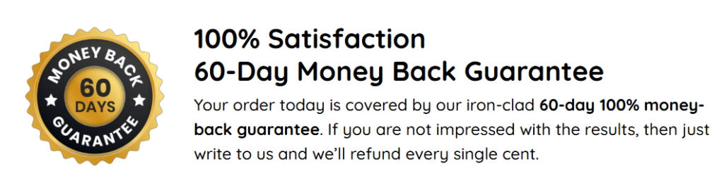 We also understand that despite the great success rate with our formula, it won’t work for everyone. Which is why we offer a 60-day guarantee on your most recent order.